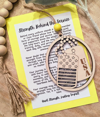 Strength Behind the Service Dog Tags Story Charm-Military Support Ornament