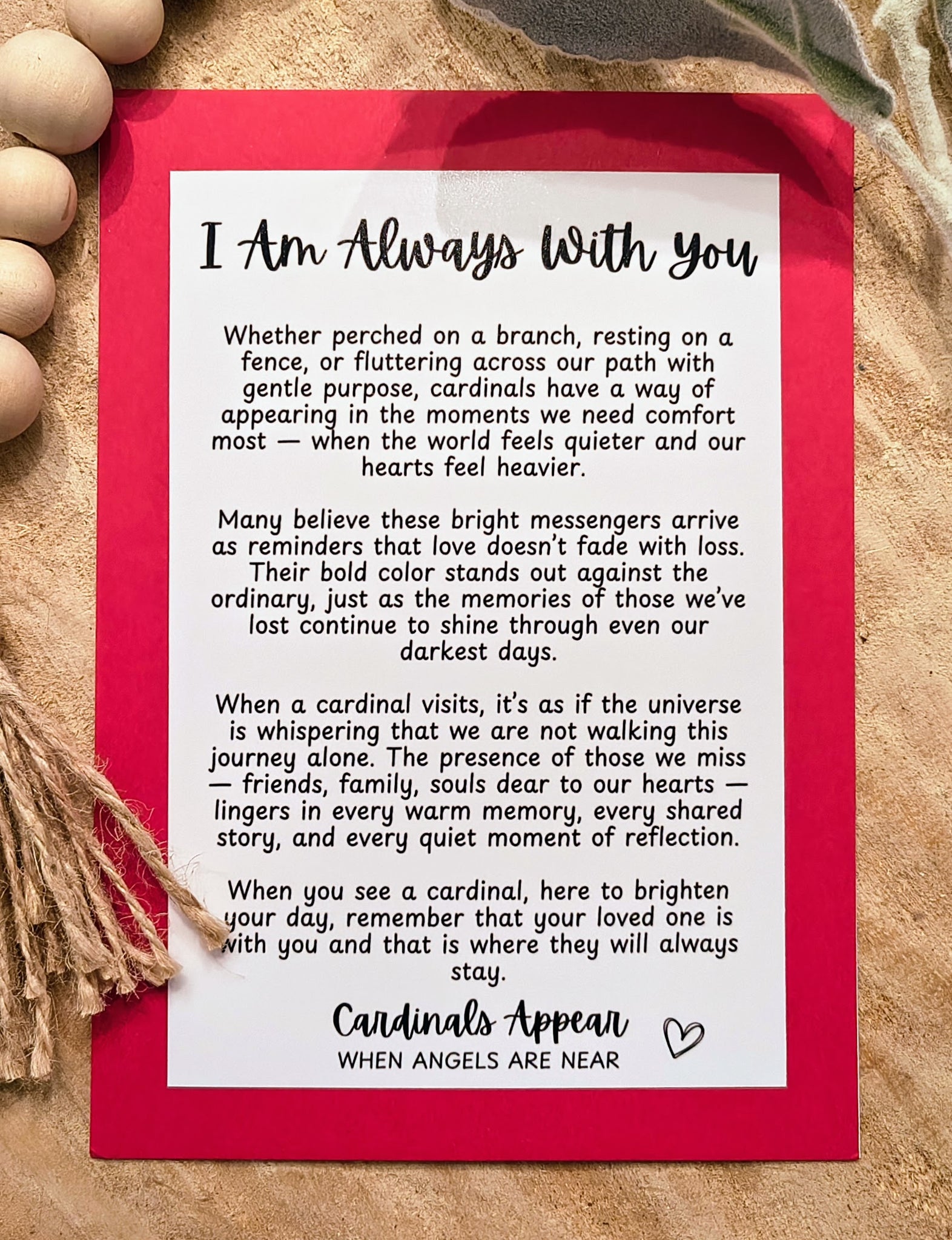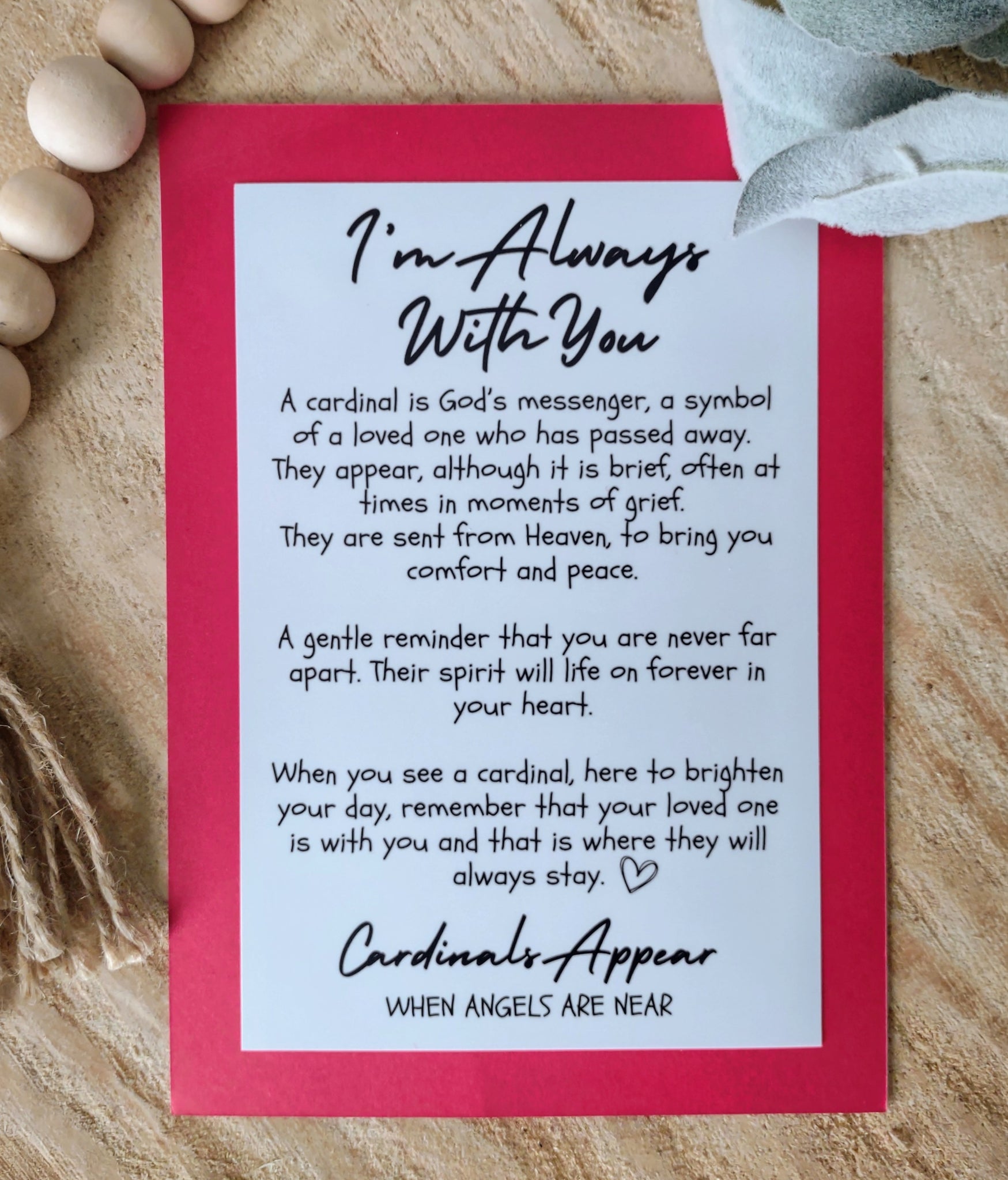 Cherish the memory of a loved one with this beautiful cardinal story charm. Symbolizing remembrance and the enduring presence of those we hold dear, this heartfelt keepsake is a gentle reminder that those we've lost are always near.