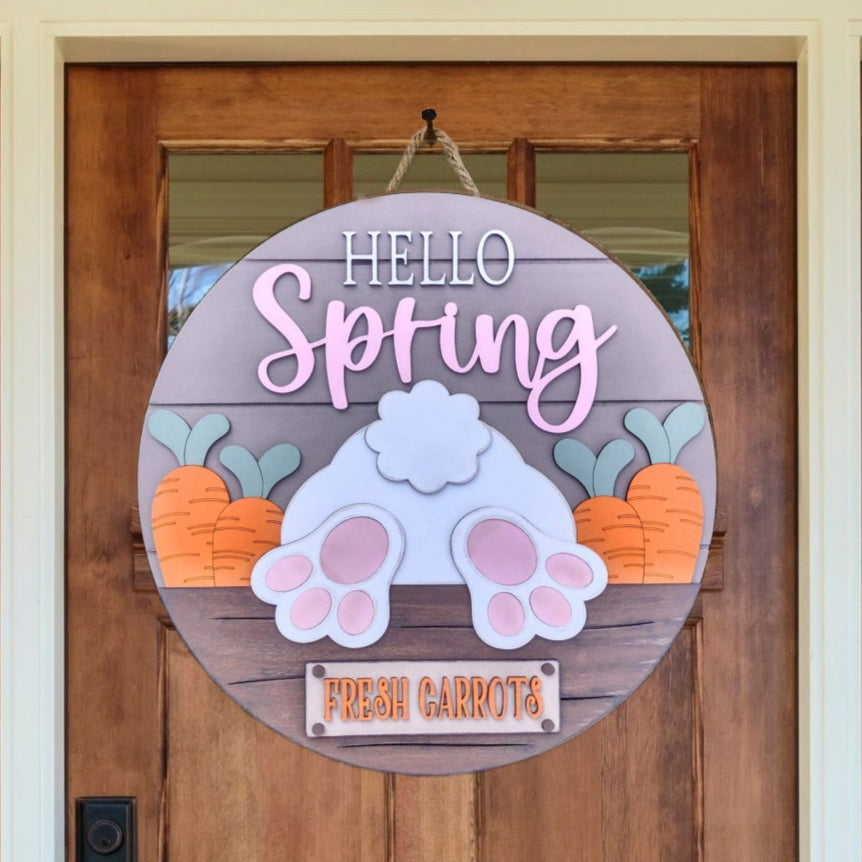 Add a playful touch to your Spring décor with this charming sign featuring a mischievous rabbit caught helping himself to a crate full of fresh carrots. Whimsical details make it the perfect piece to celebrate the season's lighthearted spirit.