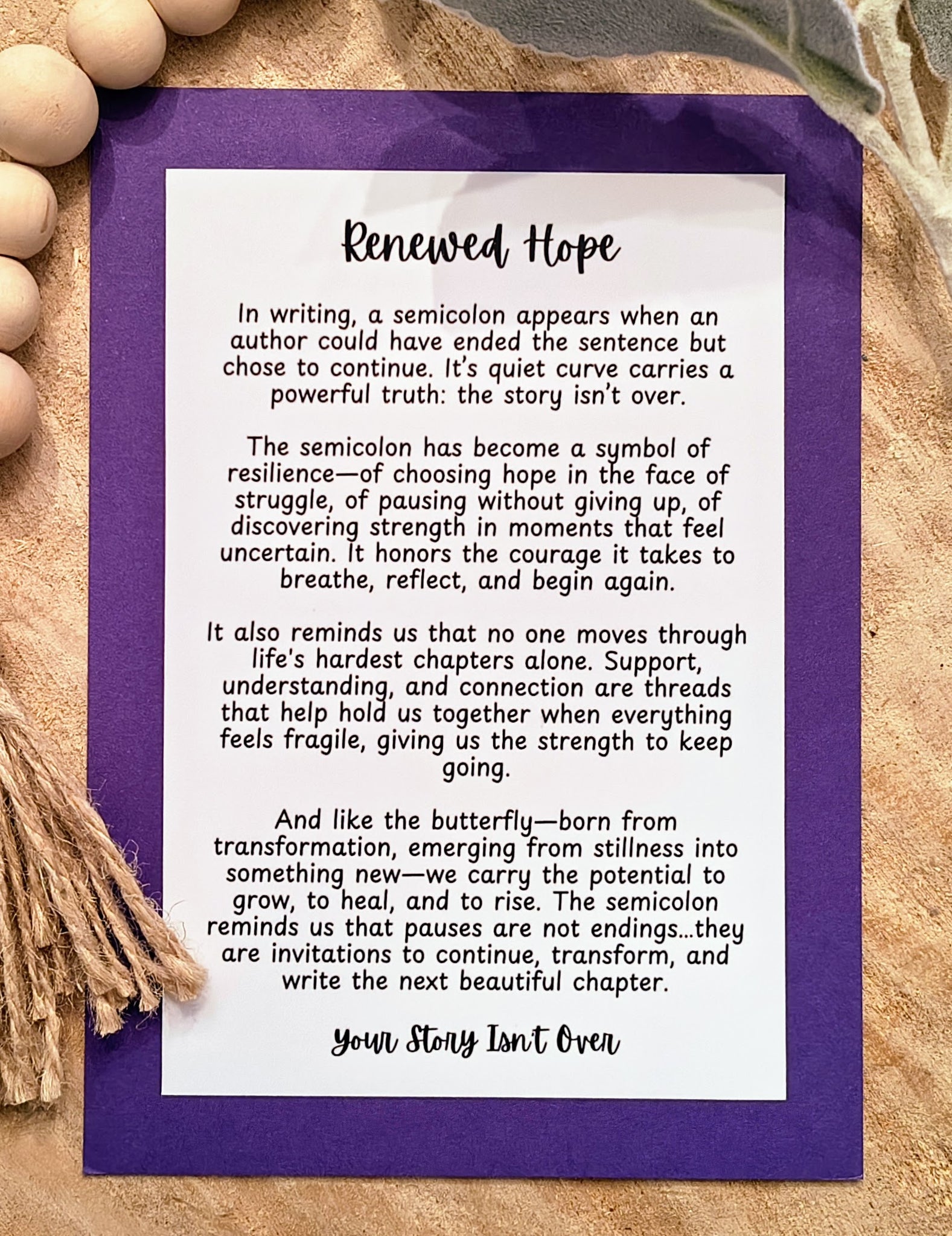 Paired with its heartfelt story card perfect for framing as an everyday reminder, it also celebrates the butterfly: a symbol of emerging from stillness, growing through change, and rising into a new chapter with grace and resilience. A meaningful keepsake for anyone embracing healing, transformation, and the beautiful decision to continue their story.